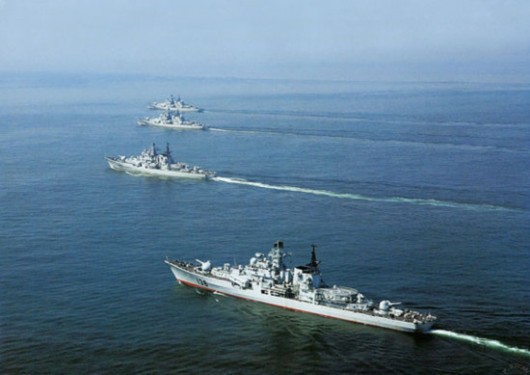 资料图:中国海军四艘现代级驱逐舰编队。