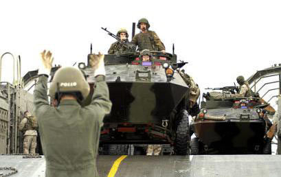 资料图:2003年2月12日,大批美国海军陆战队及大型装备抵达科威特