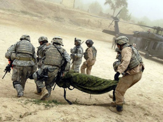 资料图:驻伊美军士兵在通过直升机转运伤员