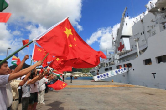 资料图:中国海军“和平方舟”号医院船圆满完成在塞舌尔为期5天的医疗服务任务,驶离塞舌尔首都维多利亚,前往孟加拉国。新华社记者查春明摄