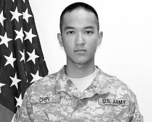 这名自杀士兵名叫丹尼·陈(Danny Chen,又名陈宇晖),只有19岁,来自纽约曼哈顿区唐人街,隶属美国第25步兵师第1斯特赖克旅第21步兵团第3营。10月3日被发现死在阿富汗坎大 哈省一个哨岗楼中,显然是自杀。与丹尼·陈同一个连队的8名士兵面临玩忽职守、攻击、过失杀人以及误杀等罪名的指控。