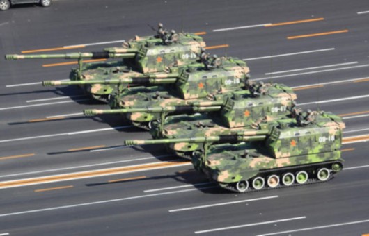 国产PLZ-05式自行榴弹炮接受检阅 李刚摄