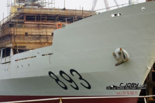 解放军的“893试验舰”上月试水,这是中国自2005年以来打造的第三艘新武器试验舰。这艘试验舰上配备了专用系统,用来对一些尚在试验过程中的新导弹和传感器进行跟踪和分析。