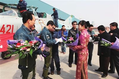 “山鹰”最后一个失速尾旋试飞架次完成后试飞员们凯旋归来。