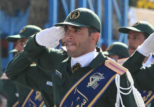资料图:阅兵中的伊朗伊斯兰革命卫队士兵。