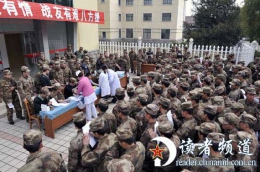 近千名战友排队献血。
