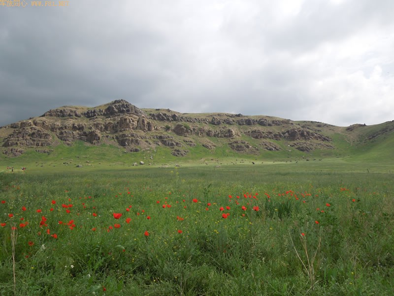 一大片盛开的天山红花闯入视野,草地比伊宁那边绿了很多,据说越靠近那拉提青草越绿。于是我把更多的期待留给了那拉提。