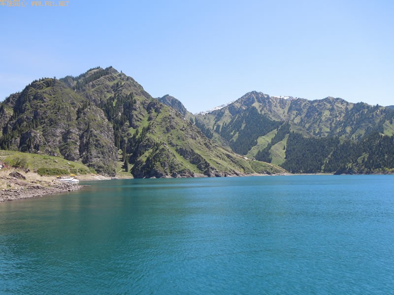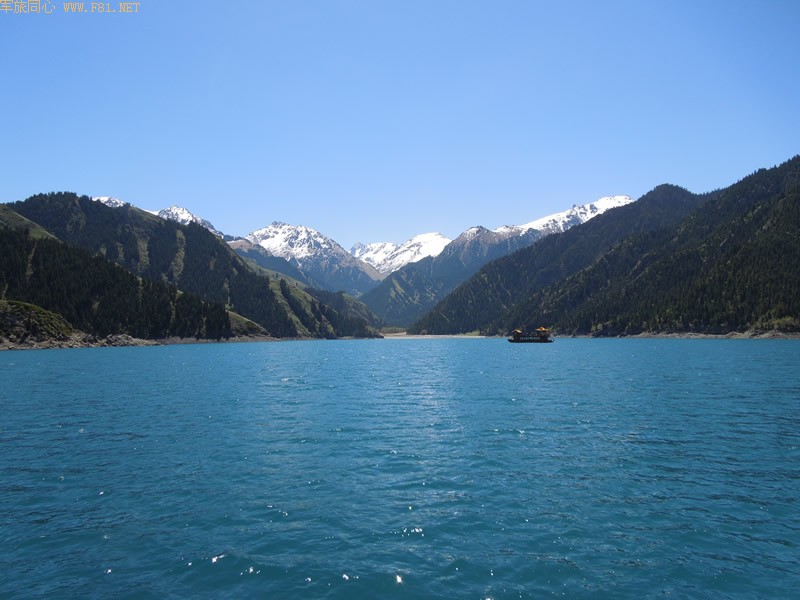乘上游览船到湖中去,据说最深的地方有一百多米。很想能抓怕到雄鹰的镜头,却没有抓到,有点遗憾。中途停靠娘娘庙,我们没有上去只远远的看了一下。回来后我再查找天池的资料,周边其实还有其他景点,包括两个小天池和瀑布,时间毕竟有限,我们都没有去,留着下次我单独再来寻访吧。