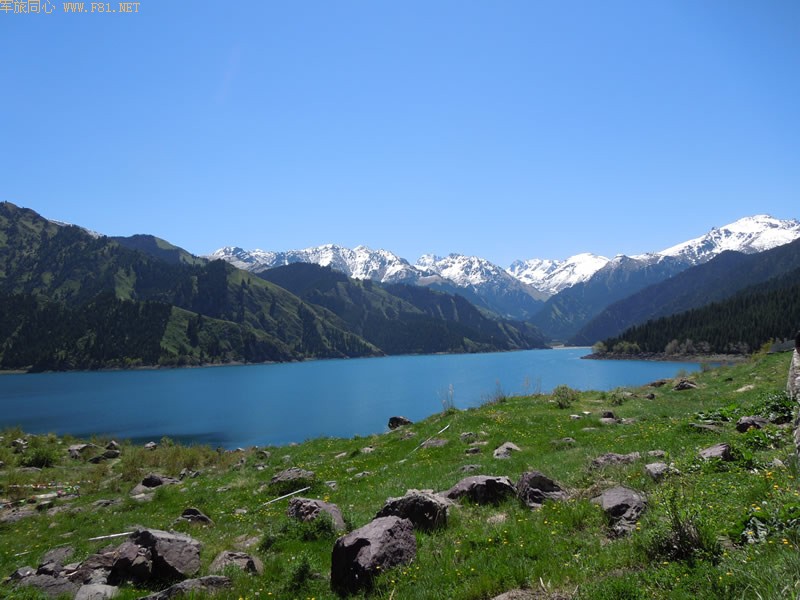 到了天池边有种震撼,太美了!远方洁白的雪山山顶和延绵的苍翠山脉、湛蓝纯净的湖水、湖面飞翔的雄鹰、湖边的草地,天然的一幅画面。难怪天山天池又被称作瑶池,名不虚传的仙境!