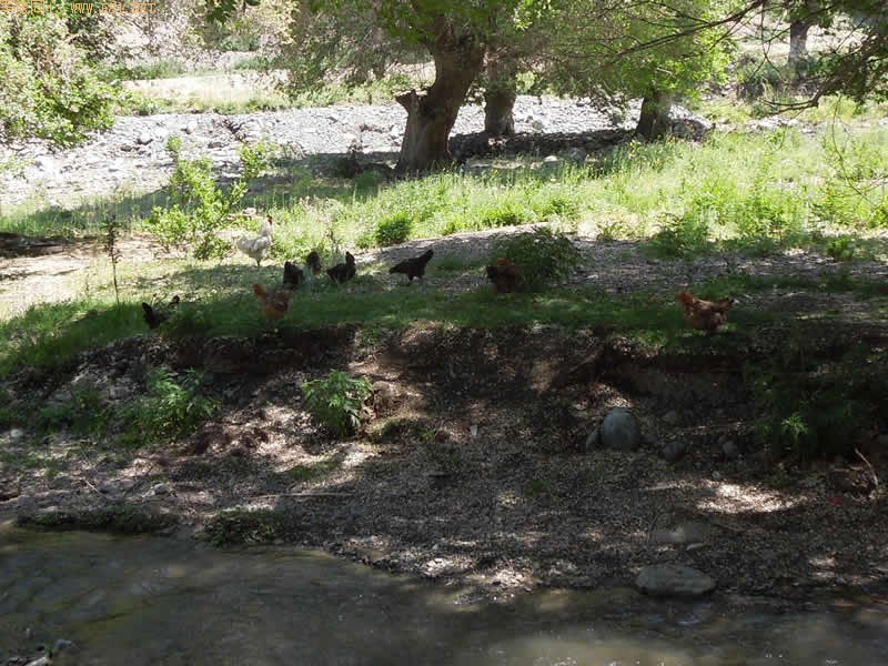 溪水对岸的鸡群