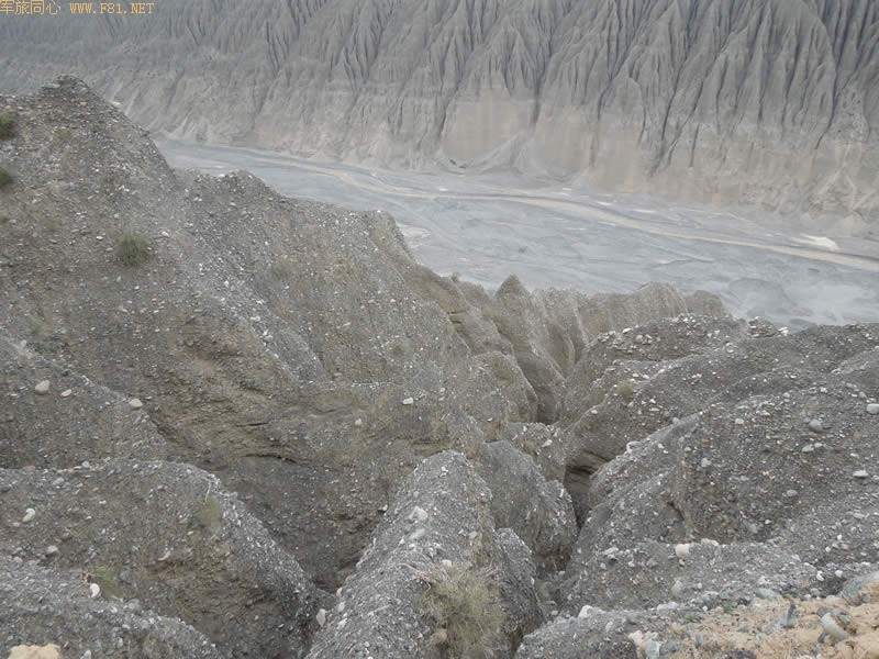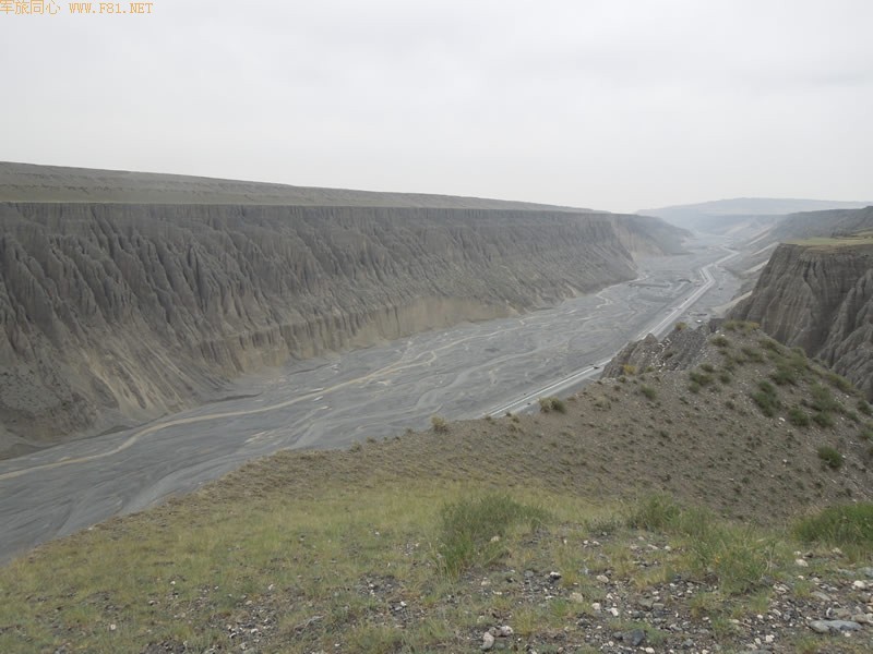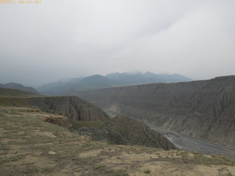 站在大峡谷上,我感觉实在是震撼。大自然的鬼斧神工竟然可以如此惊心动魄!脑子里立刻联想到科多拉多大峡谷。被山洪长年冲刷的河谷是一幅壮阔的沙画。这个季节,雪山的水还没有完全下来,谷底隐约可见一点细流,谷肩上是莽莽荒原,谷底似乎还有一些挖沙的作业。一旦山洪下来,不知道会是何等摧古拉朽的景象啊。