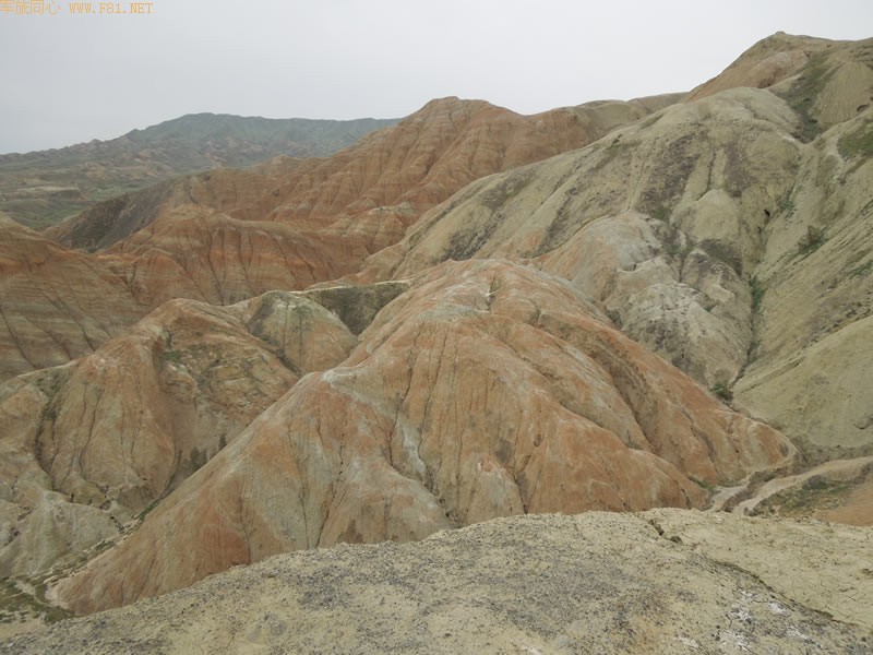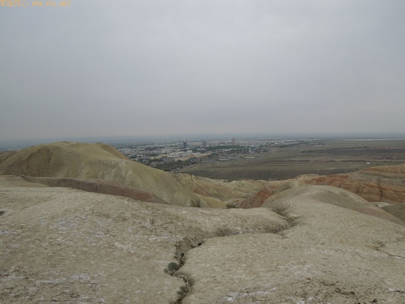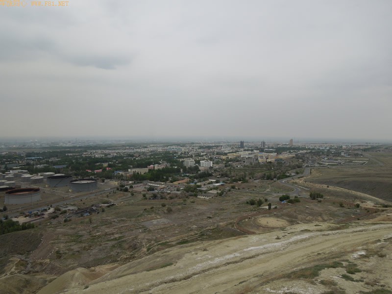 离开大峡谷,子谦领我去看泥火山。我平生第一次知道泥火山这个概念,子谦说这是全球两个泥火山之一,火山的高度不高,除了火山口还有独山子第一口油井。这时,我才知道我们一直知道的新疆克拉玛依油田其实是从独山子起步的,那要追溯到清朝,最早来这里的是七位先辈。解放后这里与前苏联合作,据子谦说为此关于主权曾有争议。泥火山上覆盖的都是泥土,有一汪小小的湖面,这里因为土囊单一,种不了树。往东南方向俯瞰,独山子尽收眼底。这确实是个小城,高层建筑很少,但是绿化却非常好。西北边可以看到地质层,估计对地质研究很有用。子谦给我介绍了独山子的布局、变迁和规划。