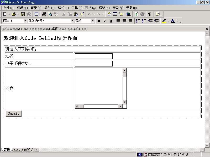 你可以使用微软的FontPage来设计你的页面的整个布局。把你的所以选项都设计到此页面中去。具体的界面如下图: