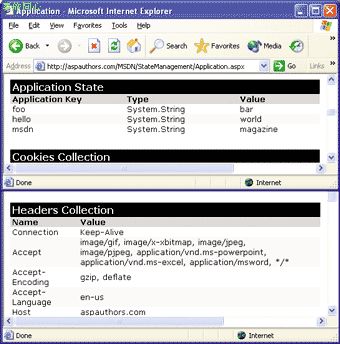 在传统的ASP中,如果被保存的数据在应用程序的生存期中根本不会改变(或很少改变,例如只读数据和大多数情况下是读操作的数据),Application对象是理想的选择。连接字符串就是保存在Application变量中的一个最普通的数据片,但是在ASP.NET中类似的配置数据最好保存在Web.config文件中。如果使用Application对象一个需要考虑的问题是任何写操作要么在Application_OnStart事件(global.asax)中,要么在Application.Lock部分中完成。尽管使用Application.Lock来确保写操作正确地执行是必要的,但是它串行化了对Application对象的请求,而这对于应用程序来说是个严重的性能瓶颈。图2演示了怎样使用Application对象,它包括一个Web窗体和它的代码文件。