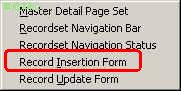 打开菜单 Insert -> LiveObjects -> Record Insertion Form ,如下图所示: