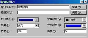 我们在“悬停按纽属性”的窗口中设置一下。在“按纽文本”中填写想要在按纽上显示的文字,还给以给那个按纽做连接。接下来你可以设置按纽颜色和效果。其中“按纽颜色”指的是这个按纽在没有将鼠标移上去的时候的颜色,而“效果颜色”就是指鼠标移上去的时候的颜色。我们还可以设置这个按纽的宽度,高度等等。设置好按确定就行了。