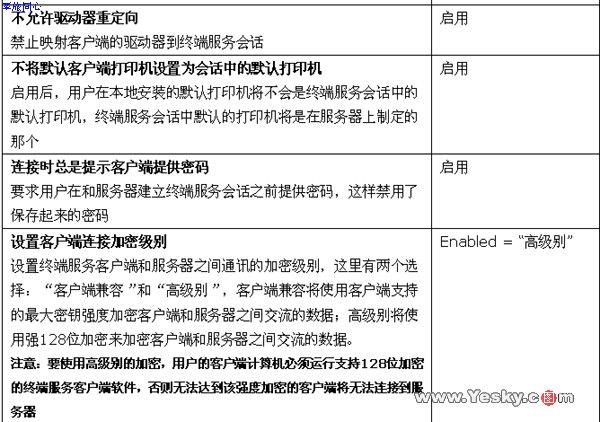 除了上面指出的一些设置之外,还建议对终端服务进行如下设置,并同样作为GPO的一部分或者通过本地计算机配置应用到计算机上。