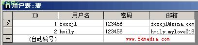 <6> 提交,再打开刚才我们设计的数据库,如图(3-11)所示,我们刚才提交的内容,乖乖的在里面躺着呢,哈。。。Dreamweaver MX,让我们世界更美丽。