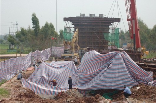 7日早上约6时30分,洛湛铁路茂名至湛江段茂南区公馆镇旧村村委会附近,一座正在施工的特大桥樑墩柱突然发生坍塌。据了解,发生坍塌的铁路桥墩属新建茂湛铁路小东江特大桥樑部分,由中铁二十二局建设。
