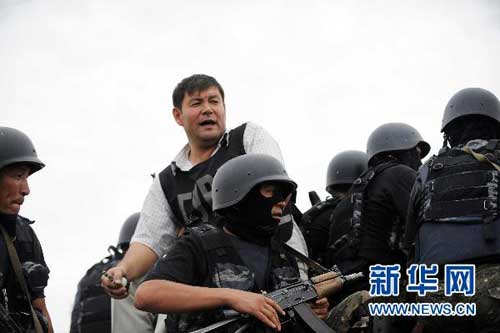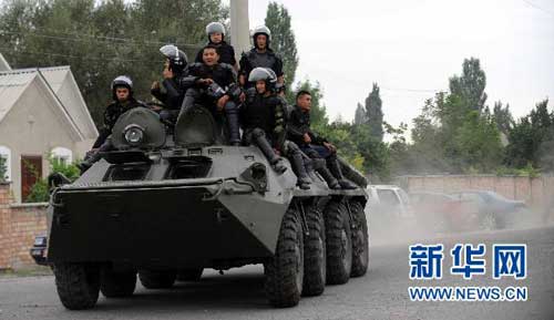 8月5日,防暴警察在吉尔吉斯斯坦首都比什凯克街头巡逻。 新华社记者 沙达提 摄