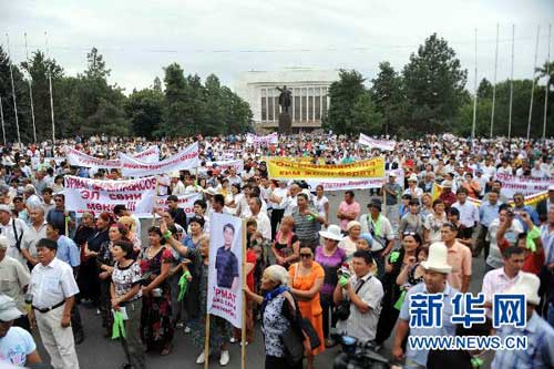 吉尔吉斯斯坦首都比什凯克5日发生集会活动。数千名吉反对党“梅肯图”领导人乌尔马塔·巴雷克塔巴索夫的支持者在议会大楼前集会。