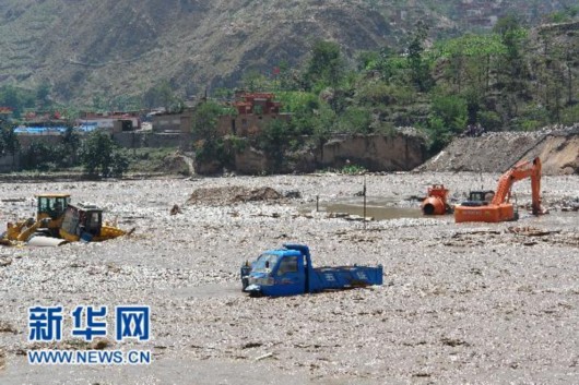 这是舟曲县被泥石流淹没的机械设备和车辆(8月8日摄)。 新华社发