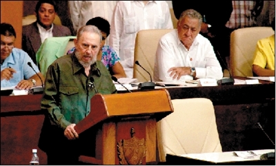 7日,卡斯特罗在古巴人大特别会议上发表讲话。新华社发