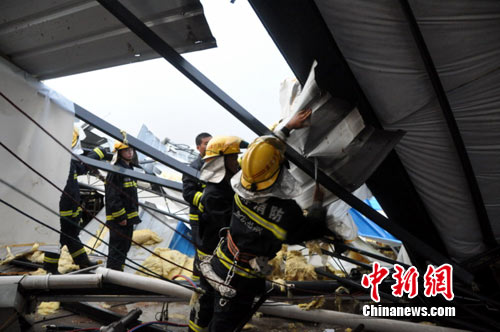 重庆长寿消防支队透露,当晚18时30分许,该支队119指挥中心报警电话声不断。“快、快,新市镇有厂房被吹垮了,你们119快来呀!”接到报警后,重庆长寿消防支队迅速调集30名官兵携带抢险救援工具奔赴现场救援。当地政府、公安等部门领导也及时赶到现场,协助和指挥救援工作。