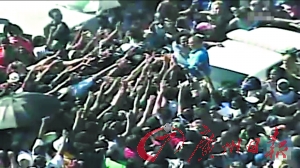 电视截屏显示,前来领取申请者挤成一团,现场局面已经失控。