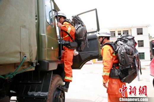 图为云南公安消防总队官兵在昆明集结,准备驰援灾区。中新社发 曾金华 摄
