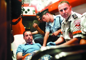 因贾兹在警察和医护人员的看护下被送往医院。新华社/路透
