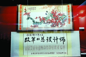 讲解员告诉记者,在这次从邓小平故居陈列馆运来的文物中,有一些是首次向世人展出的珍贵文物。小平同志90岁生日时,深圳人民赠送给他的那幅《梅花图》就是其中之一。