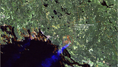 美国宇航局监测卫星拍摄的俄罗斯森林着火点图片。