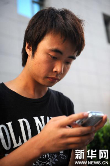 8月24日,王凯在用手机写微博。新华社记者 聂建江 摄