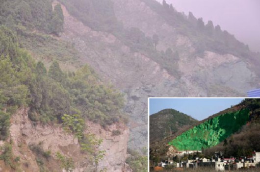 随后,记者联系到了华县国土资源局矿产办。他们表示,在全省治理秦岭北麓环境治理工作中,华县陆续关停了几十家采石场,并对裸露的山体逐步恢复植被,给而裸露山崖喷上绿颜色只是一个临时过渡措施。