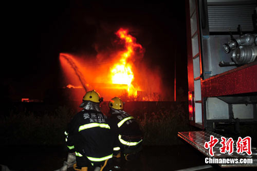 救火现场 中新社发 刘柱 摄
