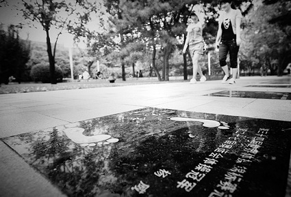 北京体育大学校园内,还留有杨威的脚印 摄/记者柴程