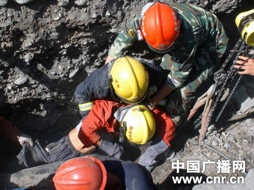 消防官兵赶到现场后,立即用工兵锹开始刨被埋工人周围的沙土,约七八分钟后,一名叫卢培然男子便被救出来后,并被现场的急救车送往医院进行救治。