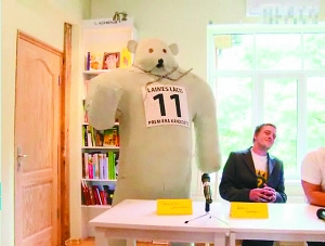 东方网9月9日消息:拉脱维亚10月2日将迎来议会选举,该国一个政党日前制作了一个2米高的泡沫塑料熊,并提名这只熊为该党的候选人竞选总理。