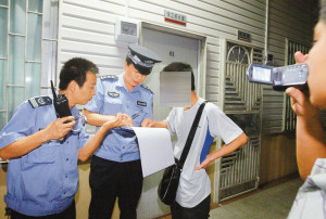 搭乘黑车的乘客协助警方做笔录。深圳特区报记者 张耀波 摄