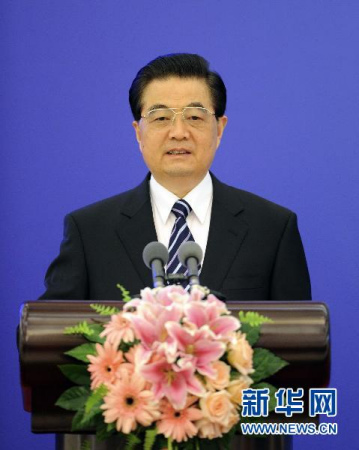 胡锦涛在讲话中首先代表中国政府和人民,对会议的召开表示热烈的祝贺,向与会各位代表表示诚挚的欢迎。