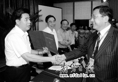 黄华华省长(左一)为省政府决策咨询顾问委员会专家颁发聘书。