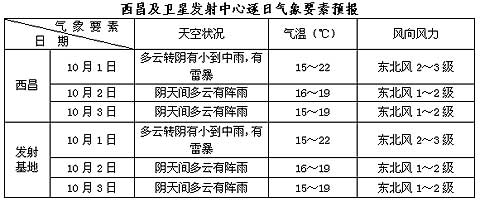 中国西昌卫星发射中心的权威发布:“嫦娥二号”卫星今天(10月1日)晚上即将迎来第一个发射窗口。预计今天空间天气平静,对嫦娥二号发射过程无不利影响;今天到4日,西昌市及卫星发射基地以阴天或阴天间多云天气为主,多阵性降水。