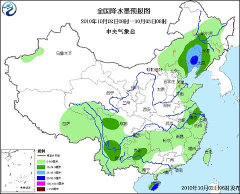 东方网10月2日消息:国庆长假伊始,全国大部地区天气平稳,仅重庆、贵州、湖南、广西和海南等部分出现中到大雨,局地暴雨。预计今天降雨范围将东移减弱,江南大部和贵州大部的连阴雨天气仍将持续。