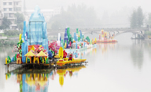 大型主题艺术灯就固定在温泉城区淦河段6公里水道中。记者陈亮 摄