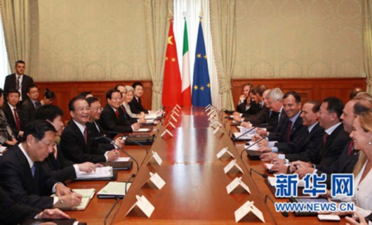 温家宝说,中意建交40周年来,双边关系稳定发展,各领域交流与合作取得丰硕成果。意大利无论在发展同中国的双边关系,还是推动中欧关系发展方面都走在欧盟成员国前列。中方愿同意方加强高层交往和各级别对话,增进政治互信,扩大务实合作,密切在联合国等重要国际组织中的沟通协调,做相互尊重、相互促进、共同发展的好朋友、好伙伴。