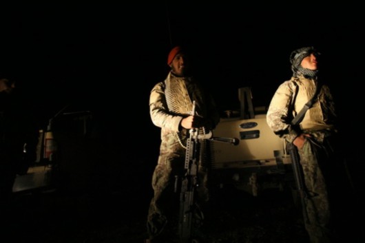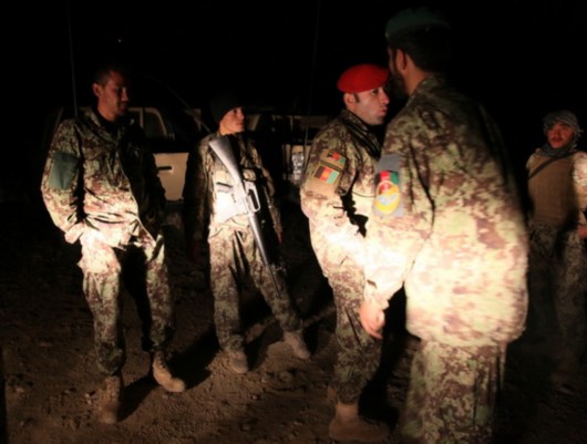 10月12日夜,阿富汗安全部队在首都喀布尔以东25至30公里处的坎吉地区警戒。