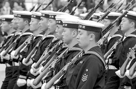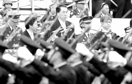 日本首相菅直人和防卫大臣北泽俊美等出席阅兵式