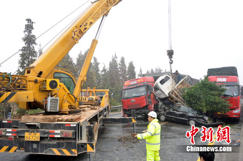 东方网11月27日消息:27日上午7时许,福银高速江西九江段(德安路段附近)发生连环相撞事故,据现场交警介绍,事故共造成22辆车追尾,10余人被困。