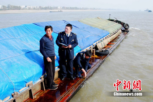 九江海事局工作人员加强巡航检查。 胡国林 摄
